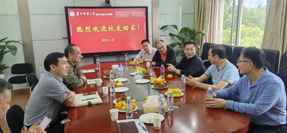 5月21日下午,华中师范大学东莞校友会会长、数统学院83级校友、武汉金发科技实业有限公司董事长谢庆棠,东莞校友会秘书长、文学院87级院友袁中华以及数统学院91级校友、东莞市第一中学校长熊盛才等人到数统学院交流座谈。数统学院党委书记刘成竹、副书记田俊、副院长左国新、原副院长何穗参加座谈。